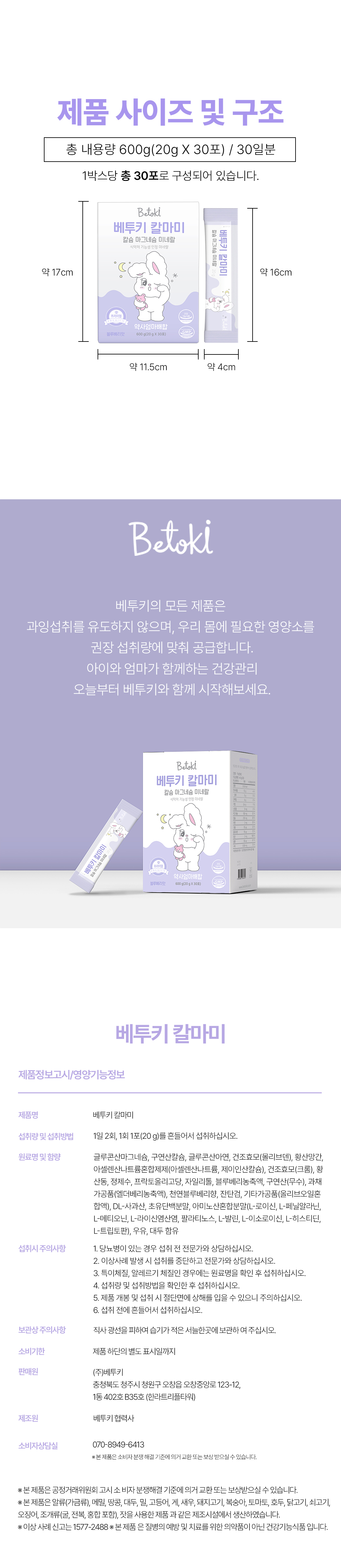 [자신] 베투키 칼마미 칼슘 마그네슘 미네랄 30포