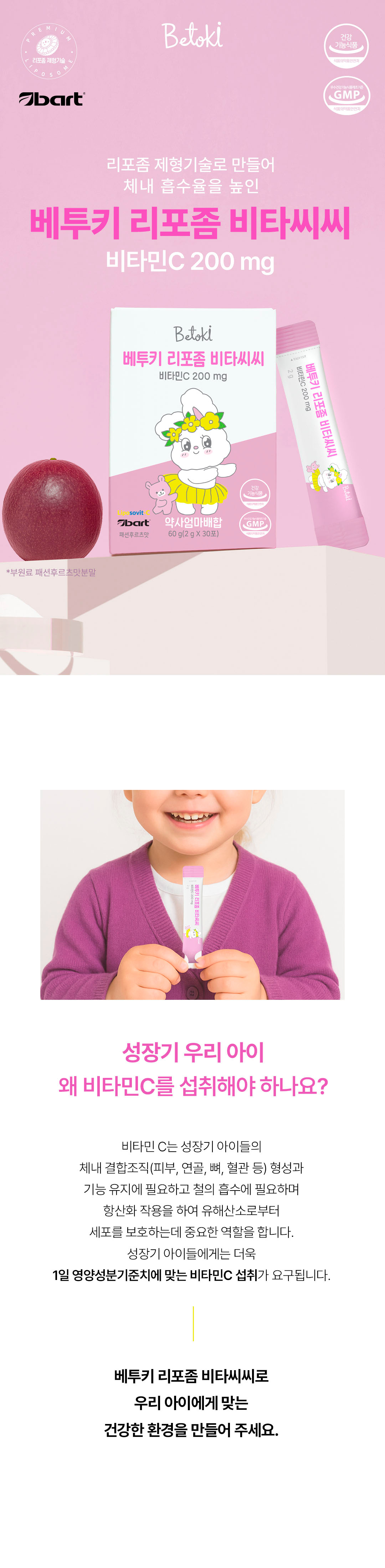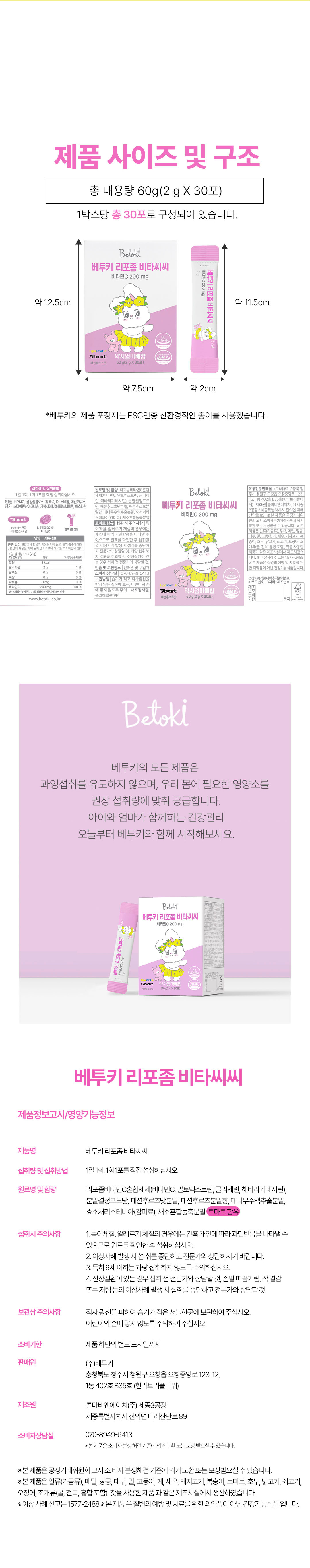 베투키 리포좀 비타씨씨 비타민C 200mg 패션후르츠맛 30포